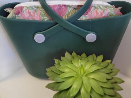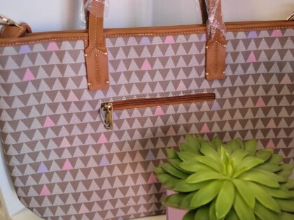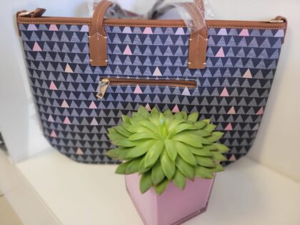 Cotton road fold over handbag (Suede material) in dusty pink and tan